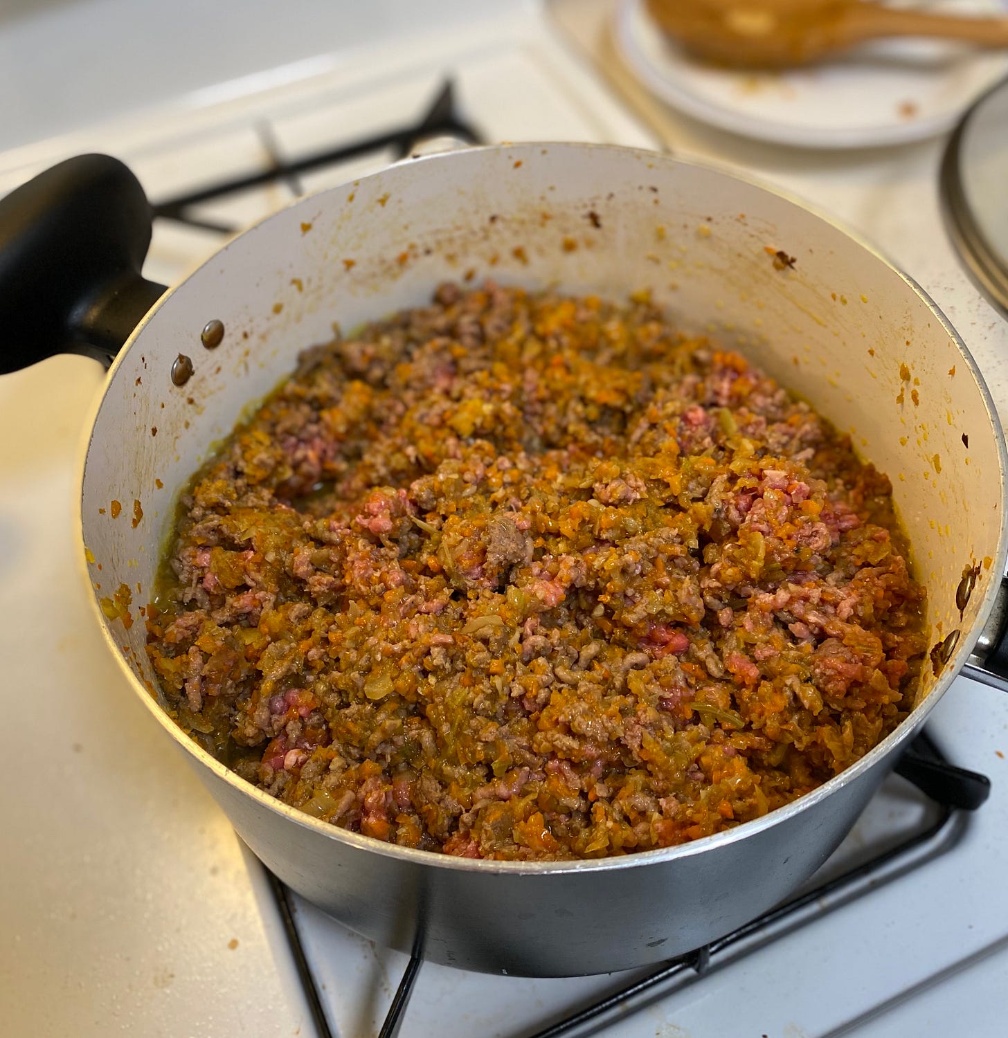 Originally, I wanted to make Lasagna alla Bolognese for this recipe. But I realized how many more ingredients I would’ve had to buy, how quick I probably would’ve eaten it, and that I’m lactose intolerant. (no mozzarella rip). So, pocketing that recipe for another time, I committed to filling my entire apartment with the smell of meat sauce for the next day. Recipe Inspiration