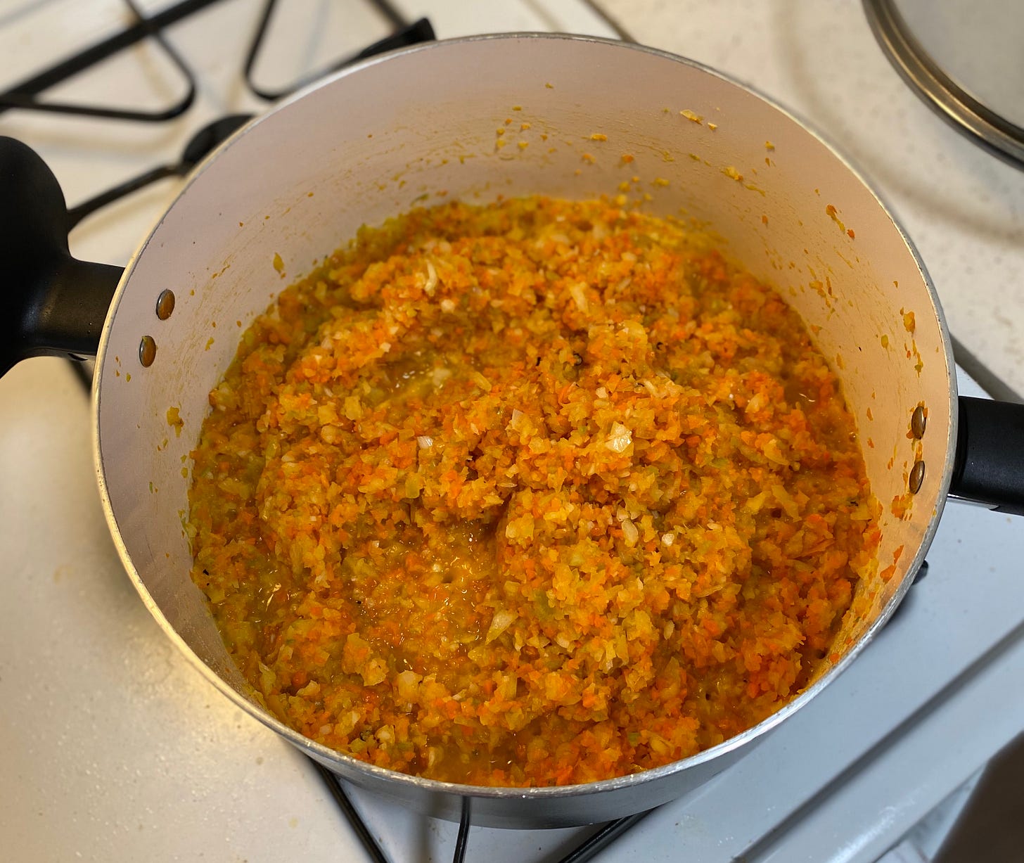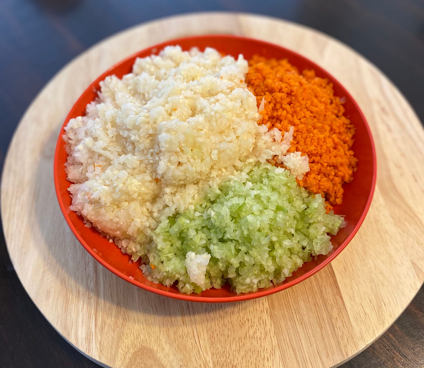 It all starts with a mirepóix of Onion, Celery, Carrots, and Garlic: